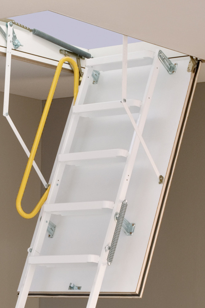 Kombinované podkrovné schody Egibi Stairs Alpine Steel sa používajú na prístup do podkrovných priestorov v rodinných domoch alebo chatách. Pôdne schody Egibi Stairs Steel sa skladajú z dreveného rámu s výškou 135 mm, izolovaného veka a oceľového rebríka. Izolované sendvičové veko so závesom a tesnením je z oboch strán opláštené bielou doskou HDF. Na tomto veku je namontovaný skladací trojdielny oceľový rebrík s práškovou povrchovou úpravou a gumovými nožičkami. Pôdny rebrík je vybavený dvojicou oceľových pružín, ktoré zabraňujú pádu pri otváraní a pomáhajú pri zatváraní. Súčasťou balenia je bočné zábradlie. Pôdny rebrík je k dispozícii v dĺžkach 1200 mm a šírkach 600 alebo 700 mm. Sú určené pre miestnosti s maximálnou svetlou výškou 2800 mm. Pri menších výškach sa rebrík reže na mieste. Objednaný rozmer schodiska je rozmer otvoru hrubej stavby, rám schodiska je v skutočnosti o 10 mm menší kvôli jednoduchej montáži. Maximálne prípustné zaťaženie je 150 kg. Schody do podkrovia sú izolované 27 mm hrubou izoláciou s U krytom = 1,1 W/m2K. Drevené časti podkrovných rebríkov sa odporúča pred použitím natrieť ďalším ochranným náterom, aby sa predĺžila ich životnosť. Na zakrytie stropného otvoru možno použiť krycie lišty Egibi Stairs Fix 18 mm. Schody sú v súlade s normou EN14975.