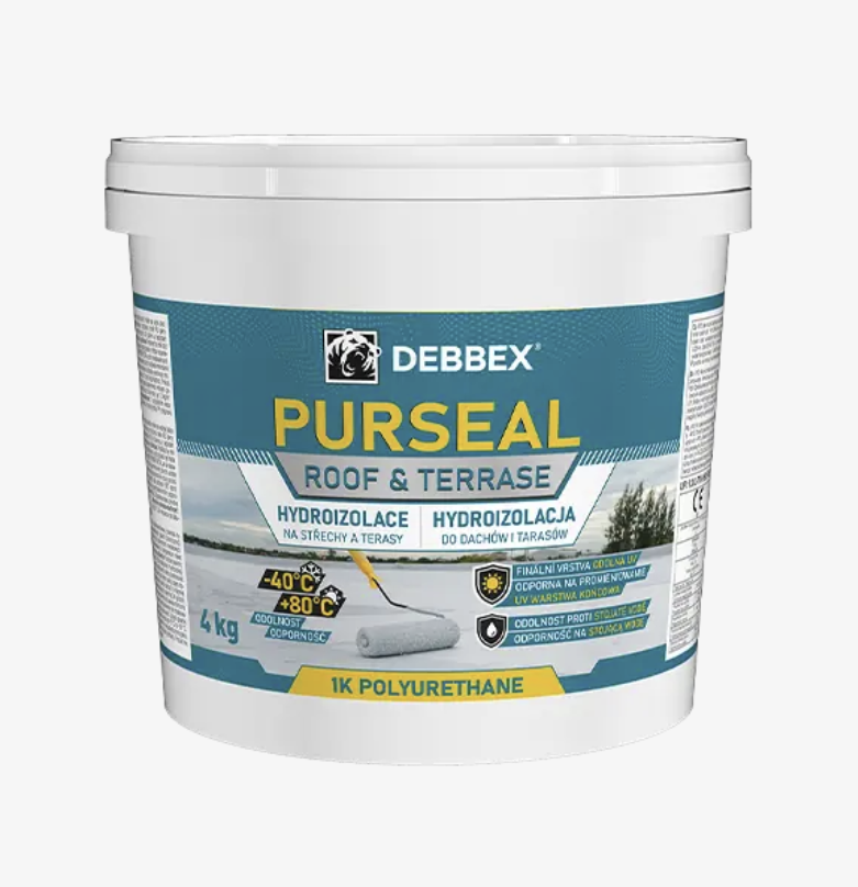 Hydroizolácia na strechy a terasy PURSEAL je hydroizolačný náter na vodnej báze, určený pre strechy, asfaltové pásy, bitúmenové nátery, terasy s rohožami, náter PU peny na jej ochranu a kovové povrchy. Má výbornú odolnosť proti UV žiareniu a teplotám až do -40 ° C s odolnosťou proti mechanickému namáhaniu.