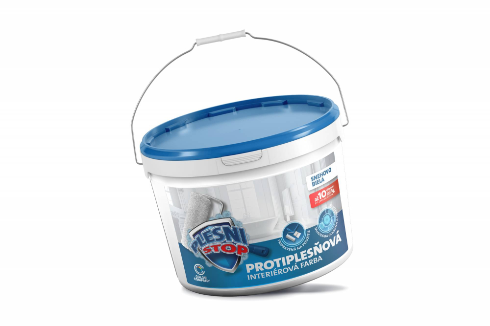 PLESNISTOP protiplesňová interiérová farba je pripravená priamo na použitie. V prípade potreby riedenia rieďte náter maximálne s 5% vody.