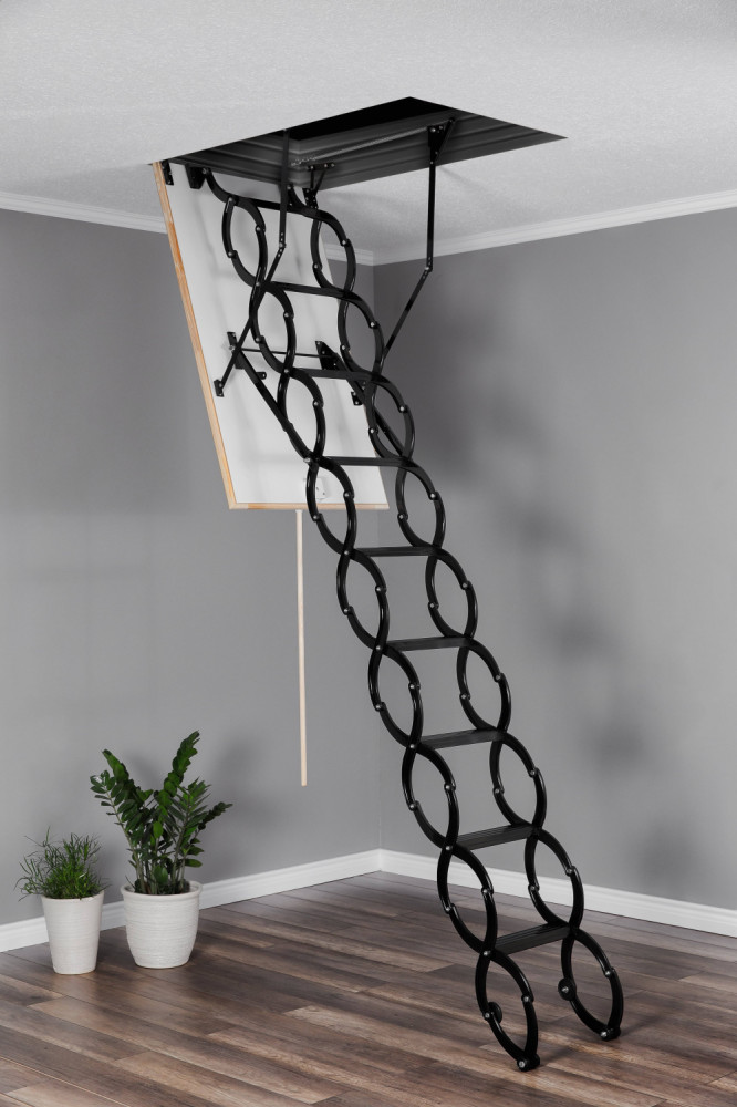 Kovové nožnicové podkrovné schody Oman sú schody určené do najmenších možných priestorov. Obľúbený horolezecký rebrík pre jeho jednoduché používanie. S nožnicovým rebríkom sa schody dajú jednoducho vysunúť, aby ste mohli vystúpiť do podkrovia, a potom zasunúť, aby ste schody zatvorili. Tieto výsuvné schody do podkrovia slúžia ako jednoduchý, praktický a izolovaný prístup do podkrovia. Nožnicové schody majú drevené izolované veko s hrúbkou 26 mm, ktoré je obložené bielou doskou HDF. Veko je izolované 20 mm polystyrénom. Nožnicové schody sú vyrobené pre maximálnu výšku podlahy 290 cm a majú kovový rám vysoký 14,5 cm. Schody majú celokovový rebrík na lezenie s protišmykovými stupňami. Maximálne možné zaťaženie nožnicových podkrovných schodov je 150 kg. Súčasťou balenia je tyč na vyťahovanie, sada pružín na jednoduché otváranie a zatváranie schodov a zatvárací mechanizmus (zámok) - schody teda stačí len rozbaliť a namontovať. Skladacie nožnicové schody do podkrovia sú ideálnym riešením pre prístup do podkrovia. Sú vhodné všade tam, kde nie sú vysoké nároky na energetickú účinnosť budovy. Súčiniteľ prestupu tepla U=1,22W/m2*K.