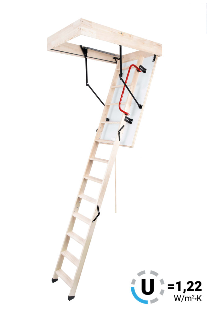Drevené skladacie podkrovné schody OmanLong Termo Ps sú dodávané s príslušenstvom za výhodnú cenu. Schody triedy Long majú dlhší rebrík ako ostatné schody OMAN. Schody sú určené pre vysoké poschodia, kde základné modely schodov OMAN nepostačujú. Toto je základná verzia dlhých schodov OMAN s 20 mm izoláciou veka. Tieto skladacie podkrovné schody slúžia ako jednoduchý, praktický a izolovaný prístup do podkrovných priestorov. Schody Long Termo PS majú 26 mm hrubé izolované veko, ktoré je na čelnej strane pokryté bielou doskou HDF. Veko je izolované 20 mm polystyrénom. Schody sú vyrobené pre maximálnu výšku podlahy 310-330 cm a majú drevený rám vysoký 135 mm. Schody majú 4-dielny drevený rebrík na lezenie, stupne majú protišmykovú úpravu. Jednotlivé časti lezeckého rebríka sú spojené špeciálnou oceľovou sponou. Maximálne možné zaťaženie podkrovných rebríkov LongTermo PS je 160 kg. Balenie obsahuje sťahovaciu tyč, sadu pružín na jednoduché otváranie a zatváranie schodov, zatvárací mechanizmus (zámok), ochranné zarážky, zábradlie - takže schody stačí len rozbaliť a namontovať. Schodisko Long Termo PS je plne vybavené. Súčiniteľ prestupu tepla U= 1,22W/m2*K.