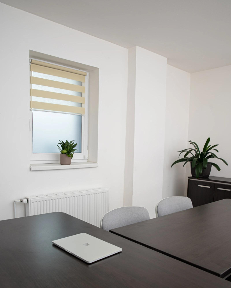 Rolety Day & Night sú elegantným riešením pre vaše súkromie v noci a zatienenie počas dňa. Rolety sa vyznačujú prvotriednou kvalitou látok a luxusným vzhľadom. Rolety fungujú na princípe dvoch prekrývajúcich sa vrstiev, kde sa striedajú priehľadné a nepriehľadné horizontálne pruhy. Čím svetlejšia farba, tým viac svetla. Montáž rolety DEN AND NIGHT je veľmi jednoduchá, bez potreby vŕtania do rámu okna. Jednoducho sa zavesí na okenné krídlo. V ovládacom mechanizme sú aj otvory na montáž do steny alebo stropu. Ovládanie reťazového mechanizmu sa podľa potreby umiestňuje na ľavú alebo pravú stranu rolety. Tkaniny z radu DEN AND NIGHT čiastočne prepúšťajú svetlo - nie sú úplne zatemňujúce.Ako správne zmerať ideálnu veľkosť rolety? Zmerajte výšku okna a na základe nameranej hodnoty si vyberte jednu z dostupných výšok 150 alebo 220 cm. Ak je výška vášho okna do 150 cm, vyberte výšku 150 cm, ak je výška vášho okna od 150 cm do 220 cm, vyberte výšku 220 cm. Zmerajte šírku okna - ideálna je šírka skla vrátane zasklievacích líšt. K nameranej šírke vyberieme najbližší rozmer z ponuky.