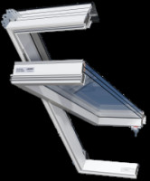 Kyvné plastové strešné okná z PVC sú určené pre budovy s vysokými nárokmi na úsporu tepelnej energie vrátane tých najnáročnejších stavebných konštrukcií. Ich modely s trojsklom sú vybavené paketom s hrúbkou 48 mm s dvoma nízkoemisnými vrstvami. Tie umožňujú získavať maximálnu energiu zo slnečného žiarenia a zároveň znižujú tepelné straty. Pánty, ktoré sa nachádzajú uprostred krídla umožňujú jeho otočenie o 180°.