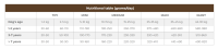 Bielkoviny 25,5 %; Oleje a tuky 13,5 %; Vláknina 2,0 %; Popol 6,5 %; Omega-3 0,4 %; Omega-6 1,4 %.