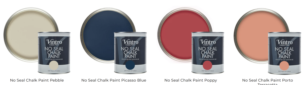 Vintro No Seal Chalk Paint je našou revolučnou farbou na nábytok, ktorá môže byť použitá v interiéri alebo exteriéri a nevyžaduje si voskovanie alebo lakovanie.
